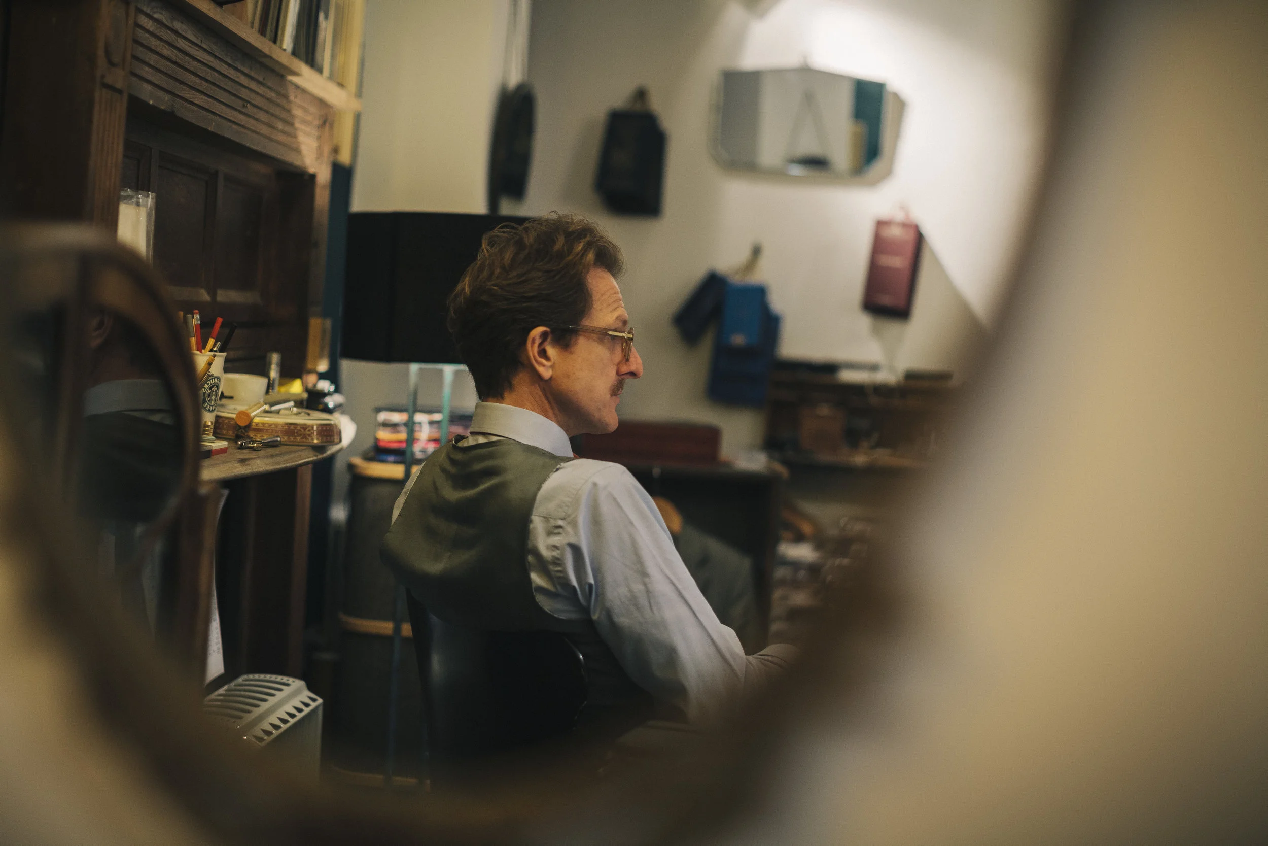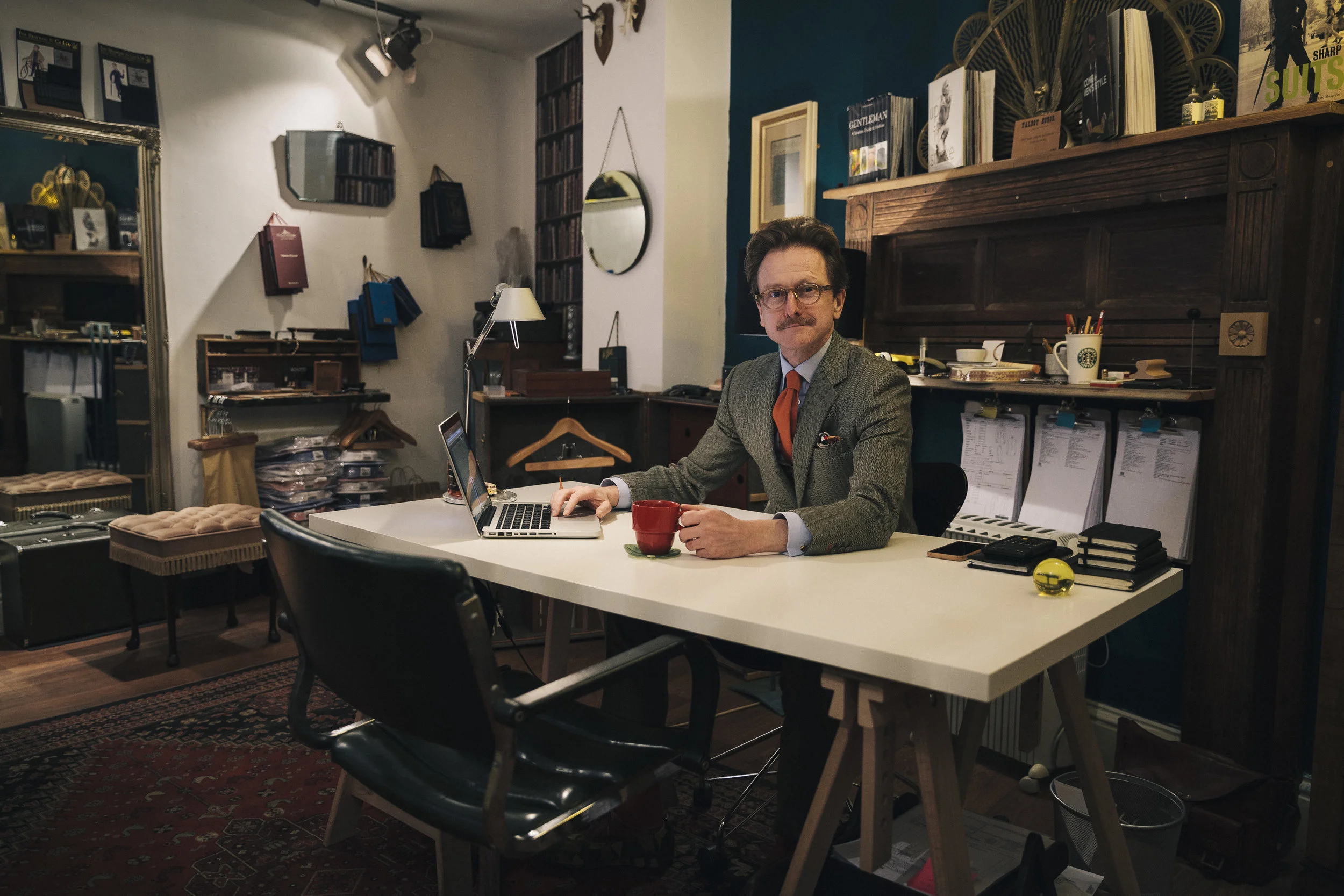 Tailor David Minns a.k.a. Brown in Town in his barbershop basement (the "Sartorial Dungeon") for online magazine Make-A-Place.